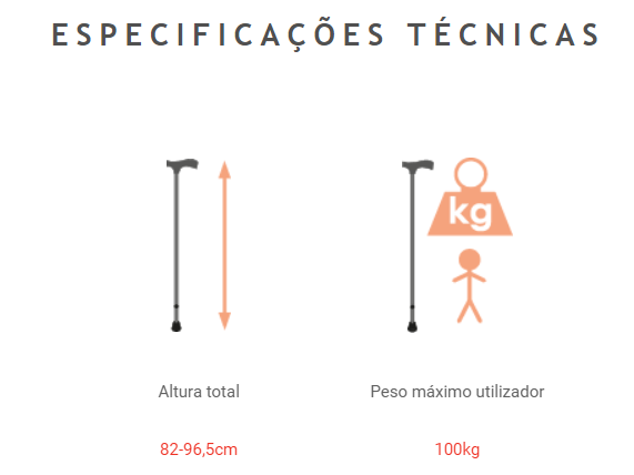BENGALA DE ALUMÍNIO, leve e resistente. A regulação da altura permite a adaptabilidade necessária para cada utilizador e a garantia de que é adequadamente utilizada.