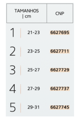 Tabela de Medidas