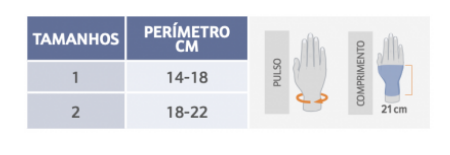 Na zona palmar encontram-se duas cintas que permitem um ajuste personalizado da compressão na zona metacárpica.