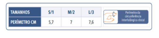 Fabricado em alumínio maleável com um revestimento interior em tecido, pode facilmente ser adaptado a qualquer dedo sem a necessidade de um sistema de fecho. Pode ser utilizado em qualquer uma das mãos. A espuma evita a transpiração na zona do dedo.